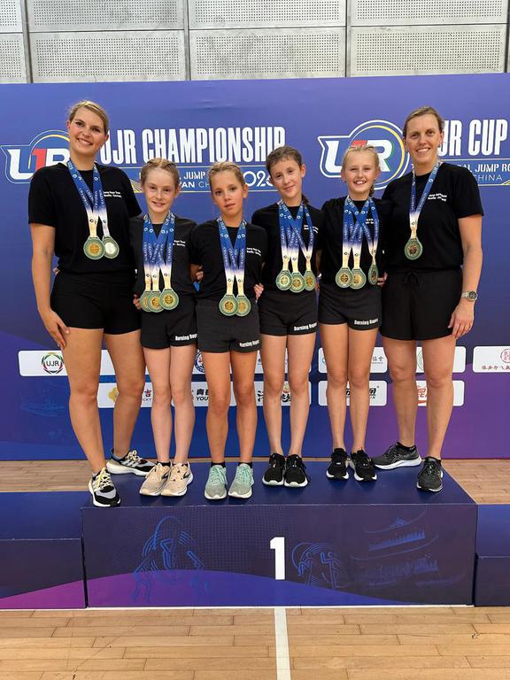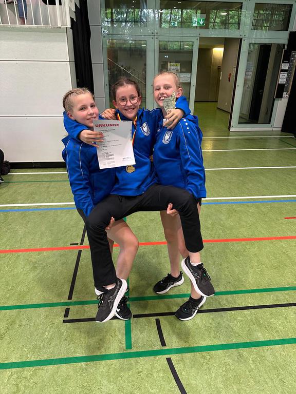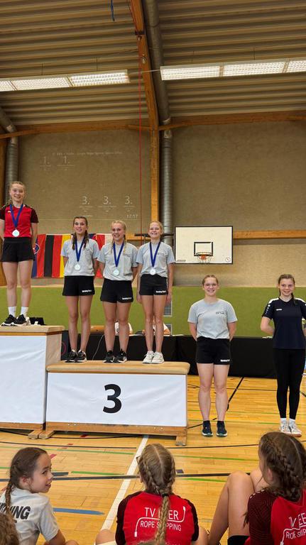 sichern. Als Abschluss gewann das ganze Team, Leonie, Fabienne, Mia, Maria und Fiona, noch eine Bronzemedallie im Double Dutch over all.